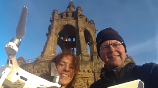 Endlich geht es los - die Dreharbeiten zu unserem Naturfilm "Wo die Weser einen großen Bogen macht - wildes Mindener Land" (WDR, Fertigstellung 2020) haben begonnen. Heute morgen waren wir zum Sonnenaufgang am Kaiser-Wilhelm-Denkmal an der Porta Westfalica. Laut Wetterbericht sollte es eigentlich einen schönen Sonnenaufgang geben - doch wie es so häufig passiert, zog genau passend eine riesige Nebelfront auf, so dass vom Sonnenaufgang nichts zu sehen war. Trotzdem sind uns mit der Drohne ein paar tolle Bilder vom Kaiser-Wilhelm-Denkmal gelungen, auch wenn die Sonne nicht rotglühend hinter dem Kaiser aufgeht.